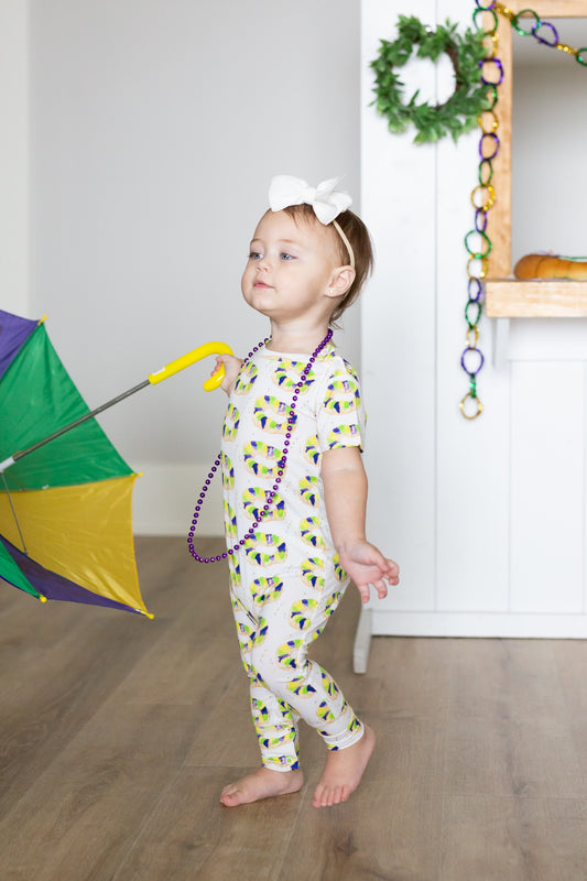 Mardi Gras King Cake Short Sleeve Pants Romper