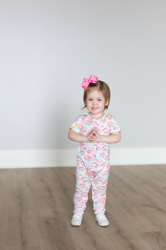 Rainbow Short Sleeve Pants Romper